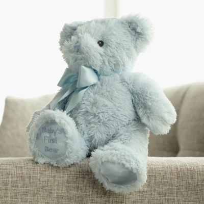 - Babys first bear: With ultra-soft fur and a hand-sewn nose, this adorable 12 blue teddy combines the look of a vintage bear with the softness of modern plush materials. The perfect first stuffed teddy for a keepsake gift to mark the birth of a little one