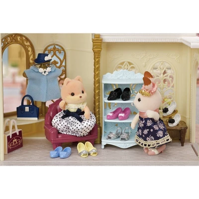 - Play dress up with the Fashion Playset Shoe Shop Collection featuring Caramel Dog Older Sister from the Calico Critters Town Series!