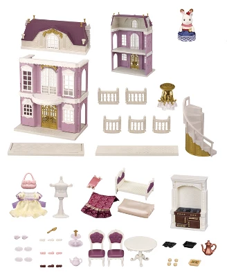 - Calico Critters Town Series Elegant Town Manor Gift Set is ready to play and includes the two-story home, poseable Stella Hopscotch Rabbit collectible figure, and furniture and accessories