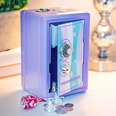 Keep your favorite treasures safer than ever! At the top is a slot for all the coins and change youve been collecting each day. Inside, youll find a slide-out coin tray plus plenty of storage space for your most prized possessions including jewelry, candy, toys, or notes from your crush that you DEFINITELY dont want your nosy siblings to read. As for security – Theres no place more secure. Not only do you need the key to get into it, you also need to know the code! Keep your valuables safe and your mind at ease with the My Treasure Keeper Safe & Bank. My Treasure Keeper Safe & Bank All-metal bank with 2 locks and a coin slot at the top Encourages peace of mind, money saving skills, imaginative play The ultimate lock box for your most prized possessions Features slide-out coin tray beneath coin slot Plenty of storage for toys, treasures, candy, and more 2 locks – A key lock and a combination lock Combination lock uses single digit code Includes one Treasure Keeper Safe/Bank, 2 keys Made of high quality, strong, durable metal Lifetime guarantee