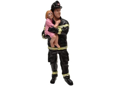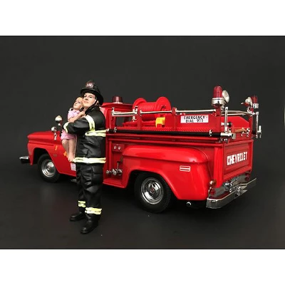 Firefighter Saving Life with Baby Figurines / Figures For 1:24 Models by American Diorama.Comes in a blister pack.Only one figure with baby will be received.Standing figure is approximately 3 inches tall.Does not come with the car shown.