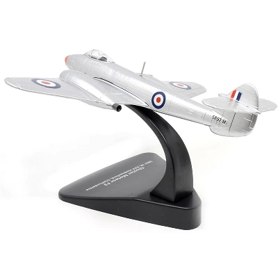 Brand new 1/72 scale diecast airplane model of Gloster Meteor F3 Jet Fighter 5897 M, RAF Hednesford, Staffordshire, England “Oxford Aviation” Series die cast model by Oxford Diecast.Detailed exterior.True-to-scale detail.Comes with a display stand.This model does not have any openings.Manufacturer’s original unopened packaging.Made of diecast metal with some plastic parts.Dimensions approximately L-6.75, W-7, H-1.5 inches.Diecast metal and plastic construction for durability and a heavy, realistic feel.It is a highly detailed and accurate model, perfect for collectors and enthusiasts of military history.Realistic panel lines, antennas, access panels, and surface details for an authentic representation of the real-life airplane.HISTORY ASPECTS:The Gloster Meteor was the first British jet fighter and the Allies’ first operational jet. It was designed and built by the Gloster Aircraft Company, and was primarily used by the Royal Air Force (RAF) during World War II. The Meteor F3 variant was an improved version of the earlier Meteor models, and was known for its speed and armament.The Meteor F3 5897 M, piloted by RAF Hednesford, Staffordshire, was deployed during the Cold War era. The Meteor F3 was used primarily in air-to-air combat and as a ground-attack aircraft. Though it was mostly used for training, it was also used in limited operational roles in the early stages of the Cold War.The Meteor F3 was considered to be a major contributor to the RAF during the Cold War and was used extensively until it was phased out of service in the mid-1950s. It remains the only British jet fighter to have been in continuous production throughout the 1940s and 1950s.The Gloster Meteor F3 5897 M, RAF Hednesford, Staffordshire 1:72 Scale Model Aircraft by Oxford Diecast is a highly detailed and accurate replica of the actual aircraft. It is made of die-cast metal and plastic and is perfect for collectors and aviation enthusiasts. It is a great addition to any collection and is a must-have for anyone interested in the history of Cold War aviation and the Royal Air Force.