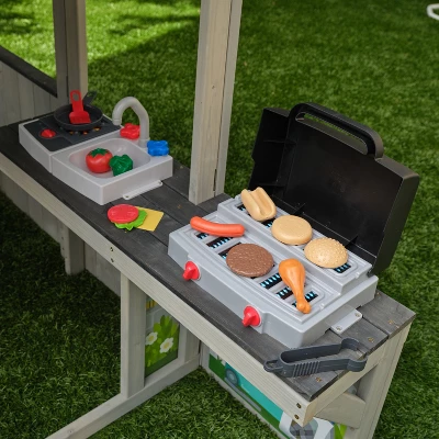 KidKraft Patio Party Wooden Outdoor Playhouse With Spinner Block Puzzle – 14pc