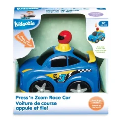- Product Specifications: Package contains (1) Kidoozie Press ‘n Zoom Race Car with press and go action. Recommended for children ages 12 months and older.