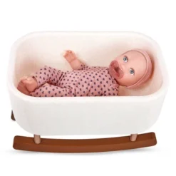 Soothe baby dolls to sleep as you calmly rock them back and forth in the cute and stylish LullaBaby bassinet. This nursery accessory features a modern, speckled-white design to create a stylish nursery for your baby dolls. And it’s perfectly sized for little ones to keep their favorite LullaBaby doll bedside during the night. Measuring 10.75β (H) x 15.75β (L) x 10.5β (W), the bassinet is durable for everyday play and easy to clean. Grow your collection with unique LullaBaby dolls and beautifully designed accessories. This LullaBaby doll accessory is compatible with most 14″ baby dolls and accessories. It is safety-tested to meet all BPA and phthalate requirements. Suggested for kids ages 2 years+ (dolls sold separately).