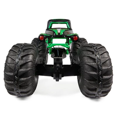 Conquer any obstacles with the new and improved Mega Grave Digger RC vehicle. The biggest Grave Digger RC ever with faster speeds on flat surfaces like grass and overall improved performance, go further than any other remote control monster truck. This powerful all-terrain remote control vehicle measures over two feet long and puts you in control of epic Monster Jam action! The Mega Grave Digger’s custom rubber tread tires allows for better traction control on all obstacles. Its lightweight design, mega-sized shocks, suspension, and more authentic graphics makes it the best 1:6 scale USB-rechargeable RC monster truck yet. Take this rc truck anywhere outdoors and turn any area in Monster Jam arena. Using the dual joystick controller with 2.4GHz frequency, control the Mega Grave Digger monster truck RC from up to 150 feet away. This fan favorite vehicle is a fully functional remote-control truck: drive in forward or reverse, and steer left or right! With a detailed body, authentic BKT Tires, and look-alike chassis, this newer replica Grave Digger is like driving the real thing. This makes a great alternative to a rc car, rc plane, remote control boat, remote control helicopter and other rc trucks. With so many other Monster Jam trucks to collect, add Grave Digger, Megalodon, El Toro Loco and more to your collection and race them all! Monster Jam toys like remote control car, and toy trucks are the perfect gifts as girl and boy toys, ages 3 and up. Overcome any obstacle and put yourself in the driver’s seat with the Monster Jam Mega Grave Digger RC! Includes: 1 Mega Grave Digger RC, 1 Remote Control, 1 Instruction Guide