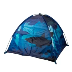 Swim with the sharks in this super-sized Shark Cove Play Tent, complete with a tunnel port! Sized at 58″ x 58″ x 46″, this tent is bigger than our regular dome tents, allowing plenty of room for kids and kids at heart. Great for indoor and outdoor use, this large tent is easy to assemble, disassemble, and pack up with the included carry bag. With a waterproof floor, No-See-Um mesh, double-stitched seams, and more, you’ll enjoy all the durability and safety features Pacific Play Tents offers. Don’t forget to attach your favorite Pacific Play Tents tunnel to the tunnel port for even more fun!