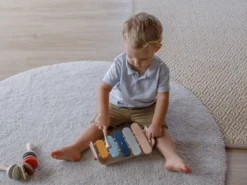 Our beloved Oval Xylophone now comes in the Orchard colorway. The PlanToys wooden oval xylophone features five colorful panels that help with hand-eye coordination. Children will be able to use the included drum stick to hit the panel to create new sounds. Watch as children string different notes together to play music. Grab your friends and family to start a band with other musical instruments in the PlanToys music series. Please note this xylophone is made for fun and may not be musically accurate.