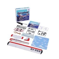 The Green Powered Airplane Set allows children to build their own airplane using a classic scheme design. They can power the airplane with a rubber band, adjusting its flying trajectory and watching it soar to impressive heights. The set includes a display stand to showcase their designs and a Learning Booklet for engaging in activities that teach them about aeronautics and physics while having fun. This hands-on experience is perfect for the whole family to enjoy, promoting eco-friendly principles through the use of green energy. By using a rubber band for propulsion, children learn about alternative energy sources in an entertaining way. The set offers a comprehensive learning opportunity, enabling children to explore and understand the principles of flight through practical application.
