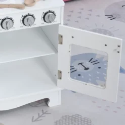 - EASY CLEAN-UP: This kids kitchen set provides easy clean-up for the child with 5 total cabinets of storage space to keep all kitchen foods and accessories from getting lost on the ground.