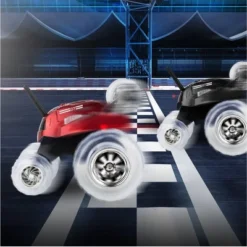 - DUAL JOYSTICK CONTROL: The unique dual joystick remote features left and right control. Each joystick independently operates the left or right side of the car at turbo speed, making it easier to flip and spin!