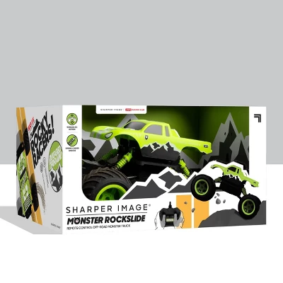 - ✔ EMBARK ON AN OFF-ROADING ADVENTURE: No road is too rough and rugged for The Sharper Image RC Monster Rockslide Truck with its large wheels and flexible chassis. Build your own obstacle course to see how the truck drives, climbs, and bumps right over!