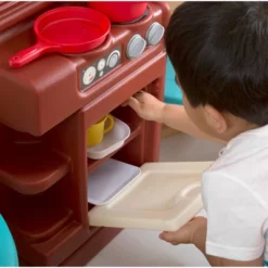 - Features play kitchen, sink, oven, clicking knobs and 4 seats.
