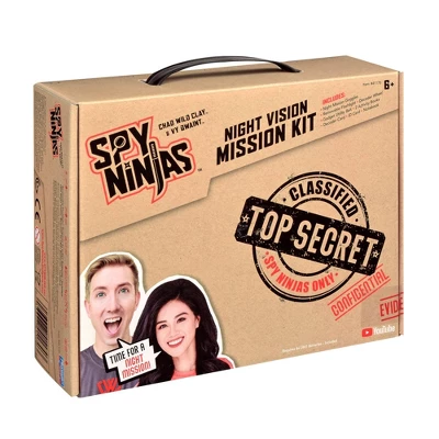 - The kit includes a carry case containing Night Mission Goggles with a green LED light, a removable Flashlight, and a Magnifying Lens. It also comes with a Spy Ninjas Utility Belt, Decoder Wheel, two Activity Books, Welcome letter, a Certificate of Achievement, a Spy Ninjas ID Card, and a Notebook!