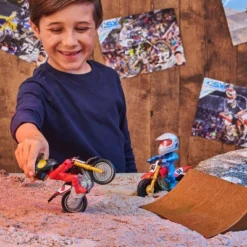 - Feel the adrenaline of Supercross with the all-new, Race and Wheelie Competition Set – includes Ricky Carmichael and Ken Roczen bikes and deluxe ramp to recreate jumps like you see at the live events!