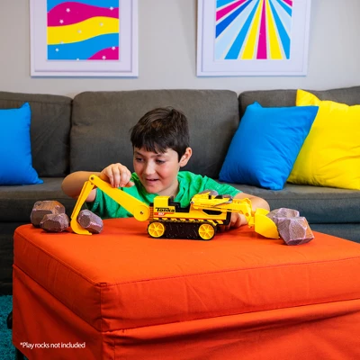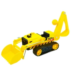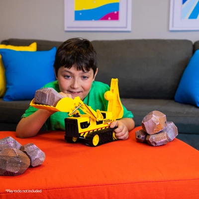 - Use the moveable knob that controls the backhoe to dig trenches! Maneuver the front lever to scoop your haul into the working bucket. Then, pull up the front lever to lift the bucket and dump the load — allowing for realistic play! Real working treads allow you to maneuv